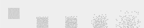 Hopefully it speaks for itself. A drop of 100 identical disks arranged in a 10x10 grid with an average edge separation of 20% diameter in the x and y directions. The vertical separation is exactly 20%, whereas the horizontal separation is randomized by half that amount. The first frame shows the start position of the grid which then drops as a unit to the ground. The frames are not equally spaced in time but show interesting points from initial contact to scattering.