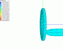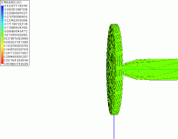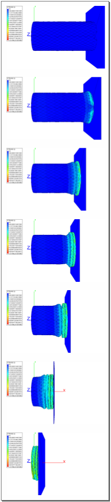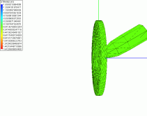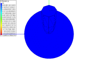 More on sanity checks. The shading colors in the previous animations are based on X-Y plane stress values in the elements. Notice how the coin retains a final stress pattern after the bullet has passed through, almost locked in with very little change. This is a free body subjected to no external forces. All internal static forces must sum to zero, and I'm not sure that's true here.