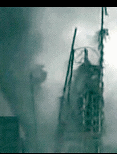 Fig 2.19 In the case of WTC1, the entire east-west width of the core survived the initial collapse. Animated gif version here