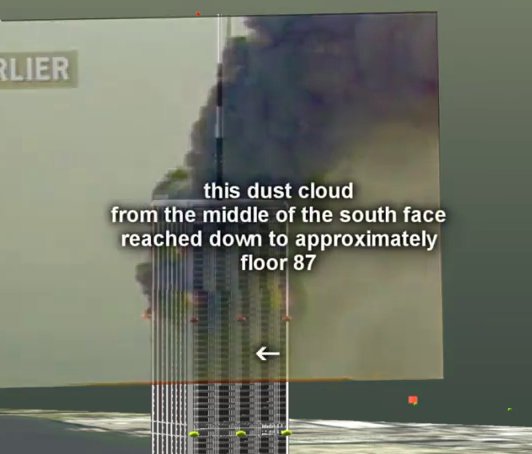 Therefore ejections extending as low as the 87th floor on the south face are visible before ejections appear along the north and west faces along the 98th floor.