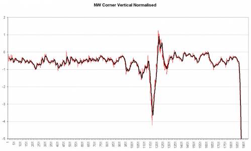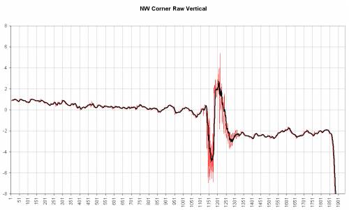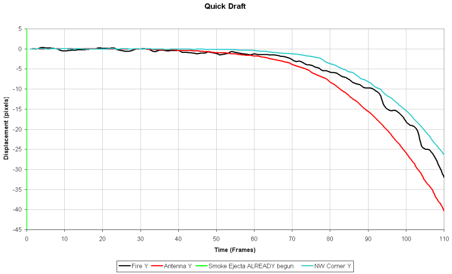 Steps 1 and 2 allow one to verify that the northwest corner is the last set of columns to fail. The precise moment of failure of the northwest corner can be determined by using the high resolution Sauret video and tracking the movement of the northwest corner: