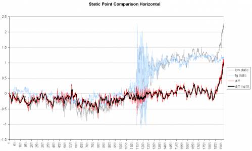 1) There is good correlation between both until near the very end of the trace, indicating that parallax effects are minimal between near and far field objects.