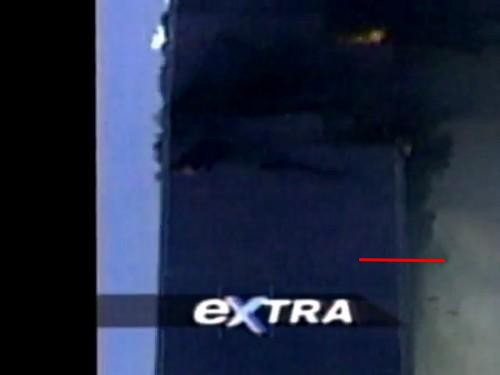 The following short video clip demonstrates beyond doubt that overpressurizations from the 95th floor and the 92nd floor emerge before those along the 98th floor and before visible downward movement of the building. It is taken from the larger clip linked in phenomenon #3.
