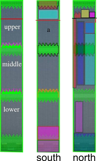 Each perimeter wall can be divided into 3 regions separated by reinforced MER (mechanical equipment room) spandrels. Collapse progression proceeds down different regions at different rates. Image on right shows identifiable sections of the WTC1 west perimeter.