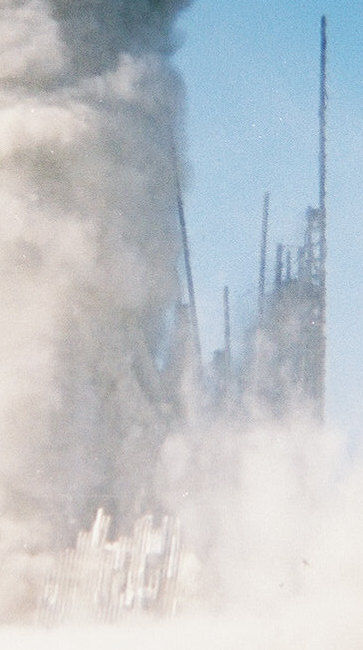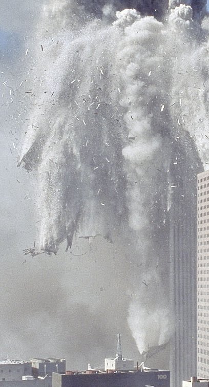 The top of this perimeter sheet seems to have been ejected quite rapidly from floor 98. Notice how far it has been displaced from the building at this time.