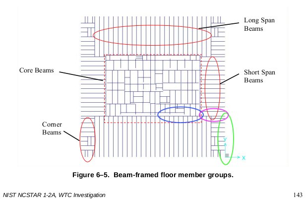 The edges of the flooring marked correspond to the sections of beam flooring marked in the following graphic. The graphic shows how beams are placed to support heavy equipment on the 75th floor (MER level):