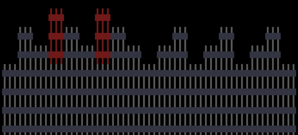which fits the pattern of the lowest bolted connections shown above with the addition of 2 more panels shown in red:
