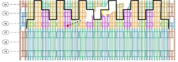 Note the identical break line relative to the wide MER spandrels that was seen above the 75-77 MER failure line.