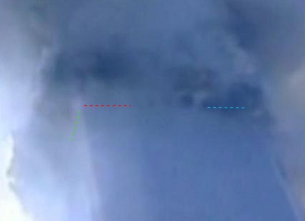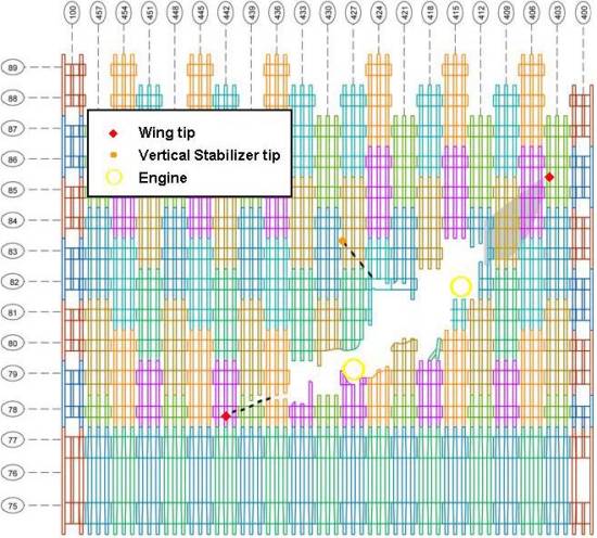 The MER corner piece marked by the green line will go into free-fall down the NW coner of the building, spinning as it falls.