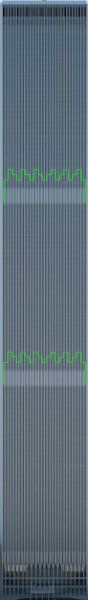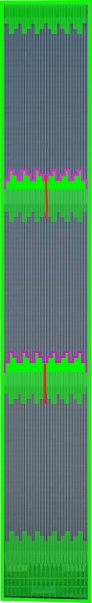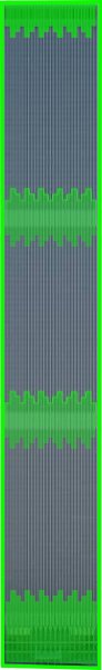 The green marks show the stiffest elements in the wall. MER panels are joined to ordinary panels through strong welds on upper and lower edges. The welds create a firm attachment extending the rigidity of the interconnected MER panels as shown.