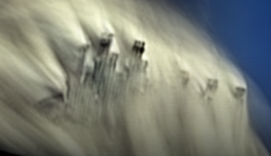 Also, amazingly, bulky debris within the perimeter would stay confined to the tube while perimeter sheets opened outward and broke off at the base like petals of a tulip.
