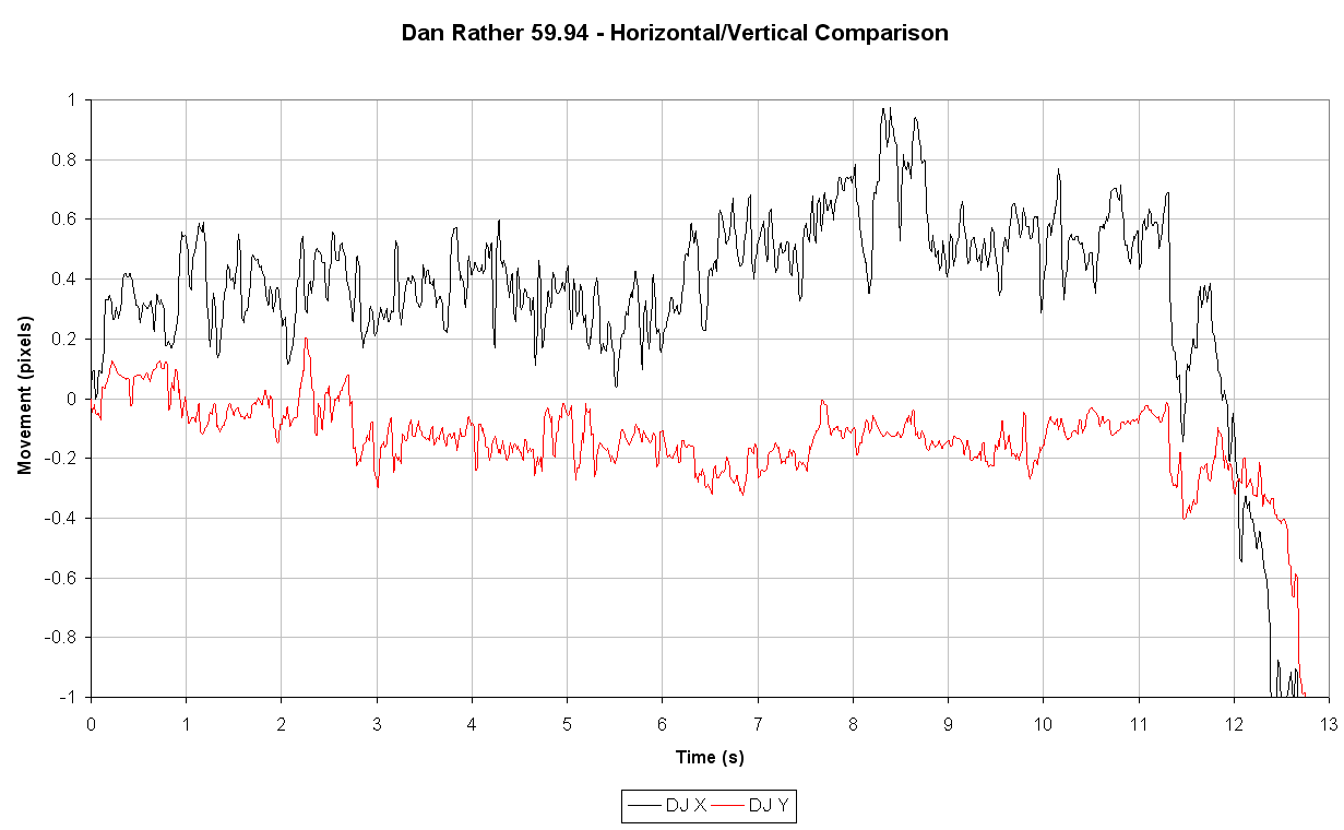 Worth noting the strange additional focus on my *analysis* of the data...which I haven't really done here yet. The extent of *claims* at this point is simply suggesting a +/- 0.2 pixel accuracy for the Dan Rather position/time data. Of course that value will vary depending upon what footage is being traced.