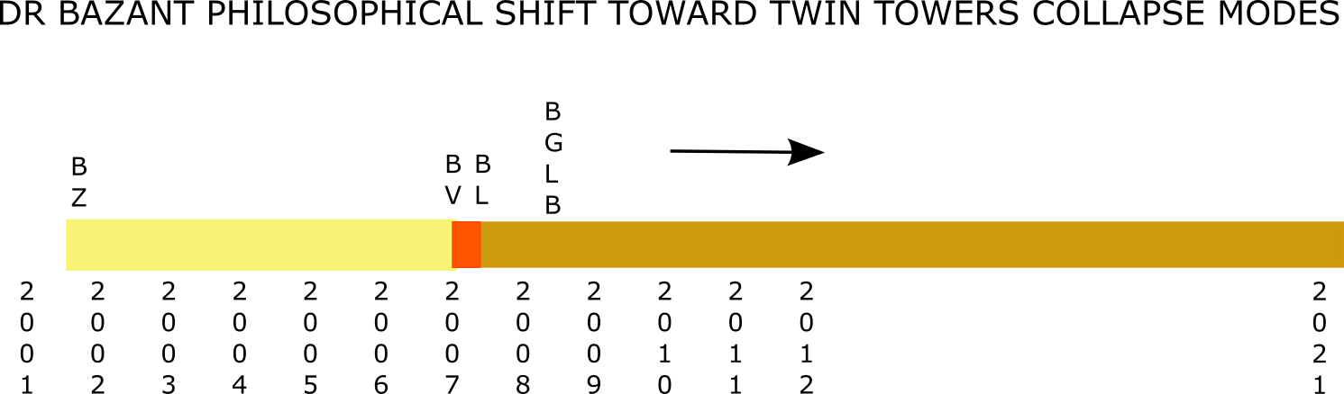 Dr Bazant also went through a major philosophical shift in mid 2006. Before that time Dr Bazant only wrote of the Twin Towers collapse modes in extremely generic terms.